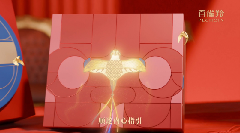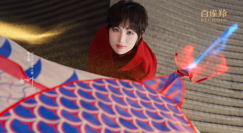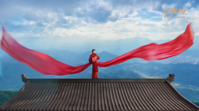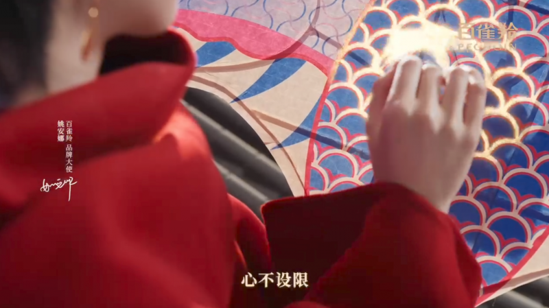 光影交错间,纸鸢飞入了百雀羚红色的新年礼盒中,成为了上头的纹样。姚安娜手抱礼盒站在房檐屋顶之上,巨幅红绸在死后随风摆动,仿佛一对翅膀,让她如鸢上升般满怀希冀地承载着新春心愿。这正与百雀羚的品牌调性异曲同工,在保遗留统文化和工艺的基础上,永不设限,奋力于将东方好意思学激动重生,向寰宇传达中国好意思和国货物牌的合手久生命力。