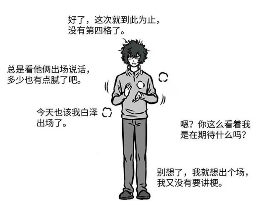九月和敖烈灭亡,白泽才启动讲话。白泽这一次是径直跟不雅众对话,暗示莫得第四格漫画,况兼要让九月和敖烈少说点话体育游戏app平台,怕咱们也会腻了。白泽就这样闪亮登场,还在玩弄咱们期待什么。只可说,这一话即是白泽念念出个场云尔,亦然一汪空气念念偷个懒云尔。