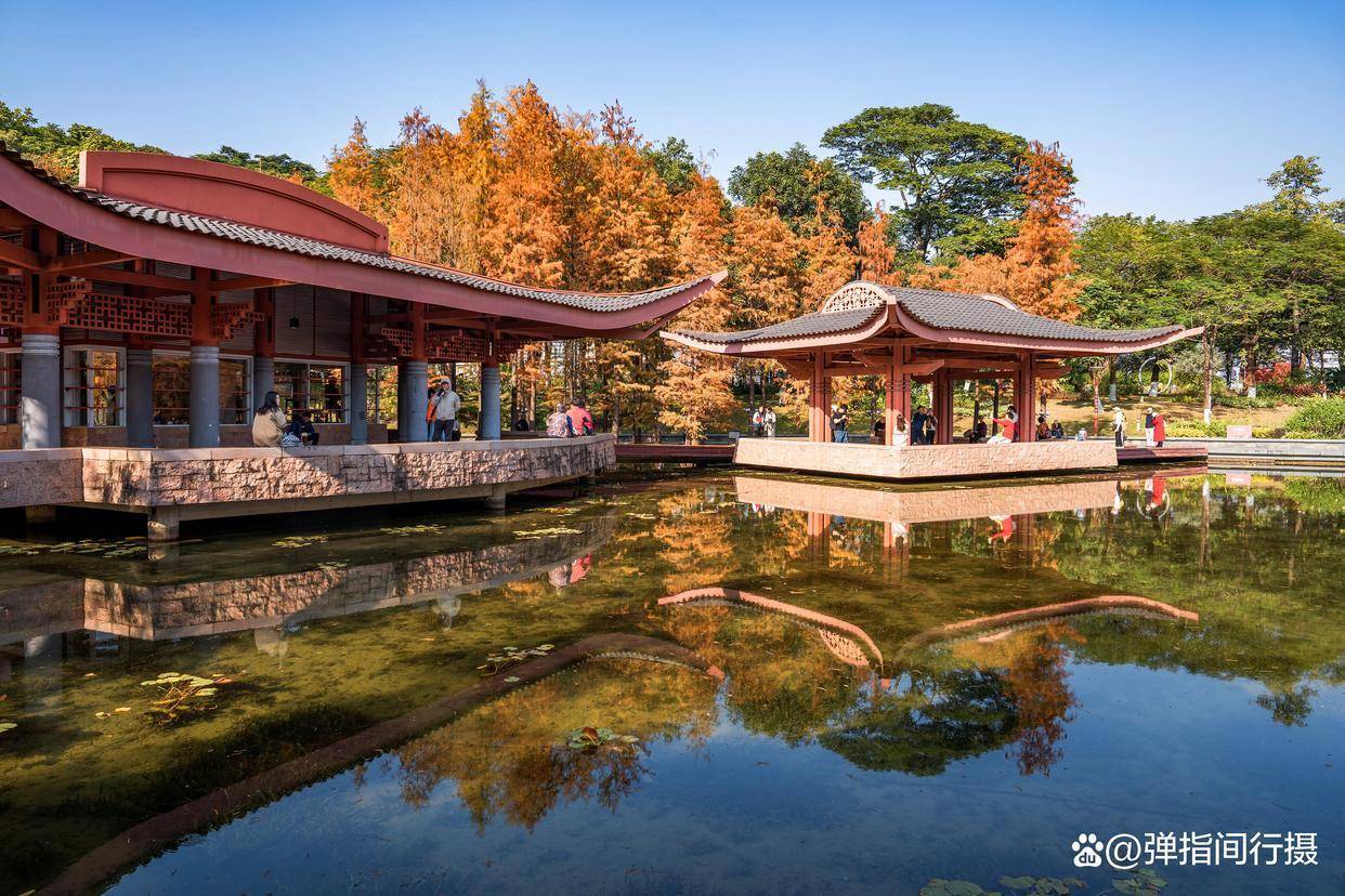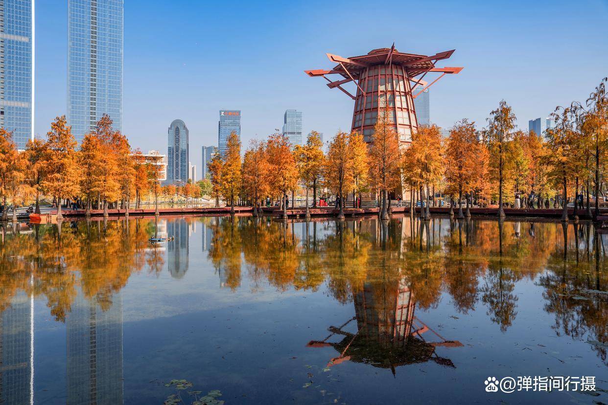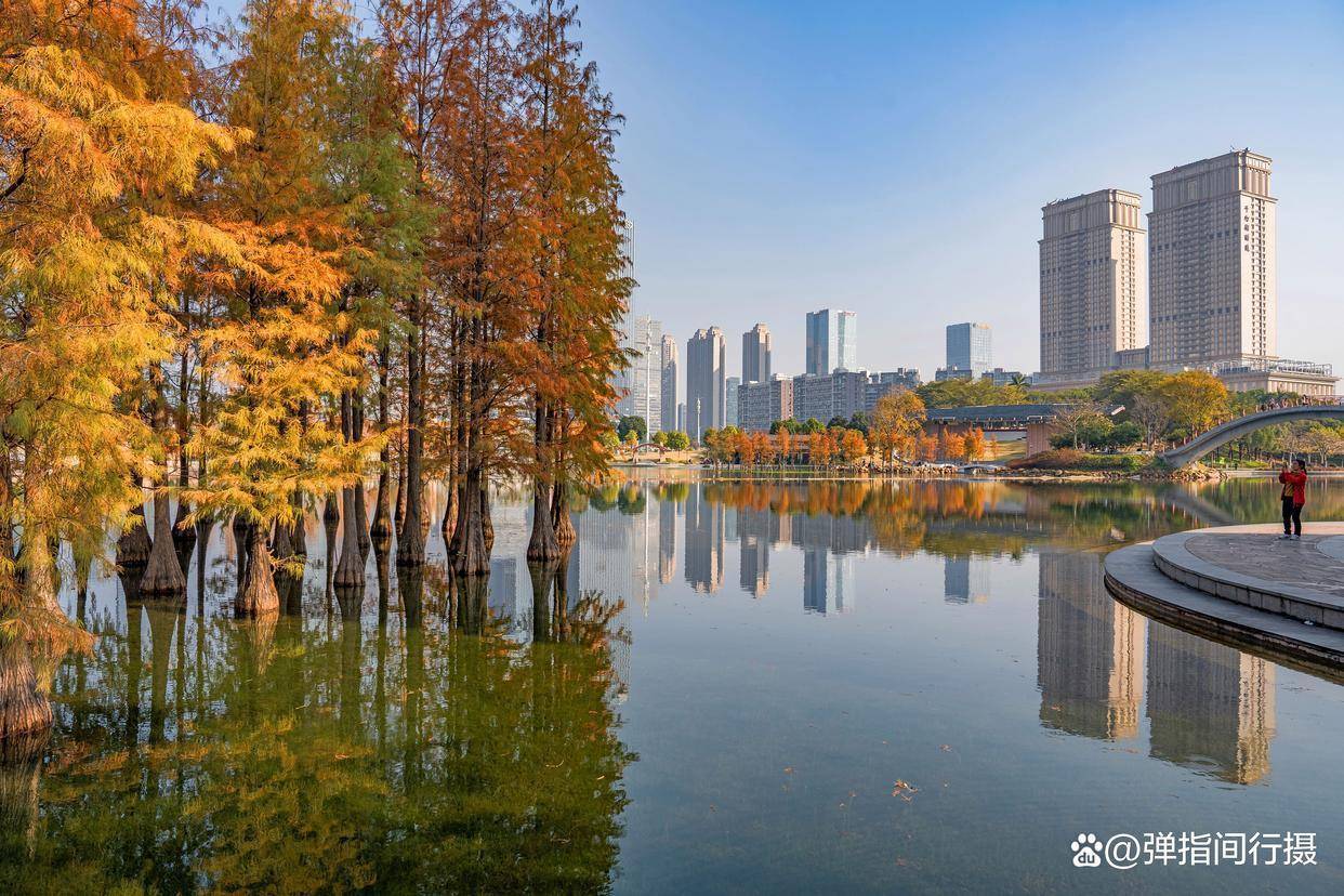 玩赏千灯湖的落羽杉,更妙的是能感受到一种文化的和会。公园的设想深得岭南园林精髓,亭、台、楼、阁、桥、榭点缀其间,飞檐翘角与红杉碧水情味横生。中国式的古典放肆与西方油画般的浓烈色调在此碰撞、调节。你不错坐在一座名为“水云间”的凉亭里,看红叶飘落如雨,感受“泊车坐爱枫林晚”的古典诗意;也不错在当代感全齐的不雅景平台上,用镜头捕捉光泽与色调组成的几何好意思学。