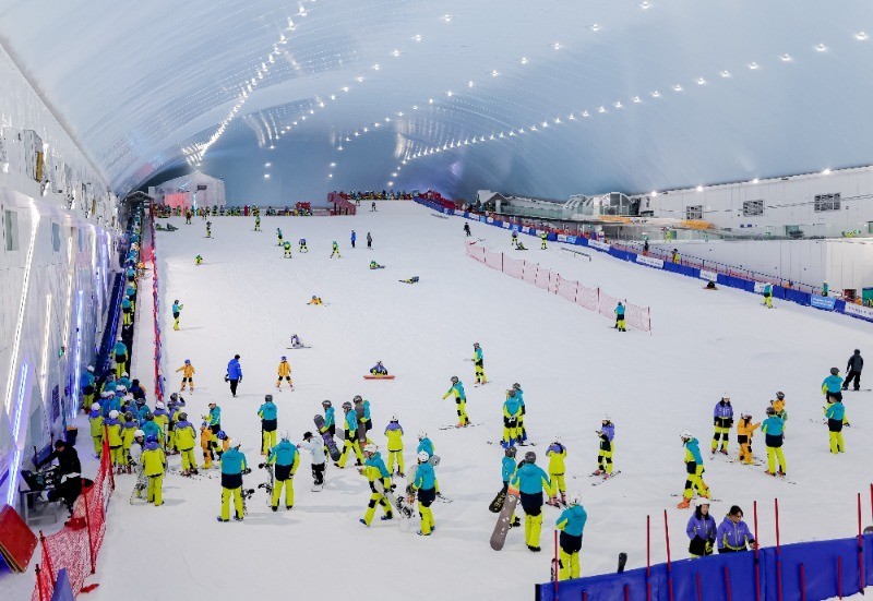 举例,广州热雪古迹就遴荐超大型制冷开采对向上5万宽泛米的冷区进行全天候制冷控温,确保四季零下6℃的适雪温度。“咱们每年一次全面换雪,换雪量近20000立方米,每月通过造雪机器制造新雪,并在逐日凌晨补雪压雪,保险崭新雪地舆睬滑雪兴趣者。”广州热雪古迹总司理孙铮暗示。