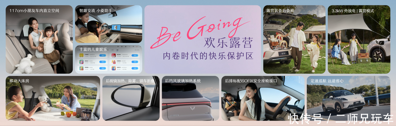 关于爱重露营的用户,缤果S提供3.3kW外放电功能,开启露营情势后锁车不下电,往来不误触。1450L下千里式后备厢适配0-10岁童车,恣意收纳通盘装备;后排放平后即可酿成挪动大床房,休憩更清静;车机自带丰富儿童文娱行使,童谣、动画片应有尽有,更有能说会说念的小菱助手,陪小一又友聊天、讲故事,让路径充满欢声笑语。同期,用户可开启定速巡航功能,远途更宽心;后视镜及后挡风玻璃均配备加热功能,保证雨雪天气行车安全;锁车后后视镜自动折叠,灵验腐化傍边剐蹭。