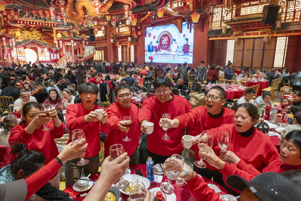 1月28日,东说念主们在安徽省芜湖市繁昌区一家酒店内享用团圆饭。新华社发(肖本祥摄)
