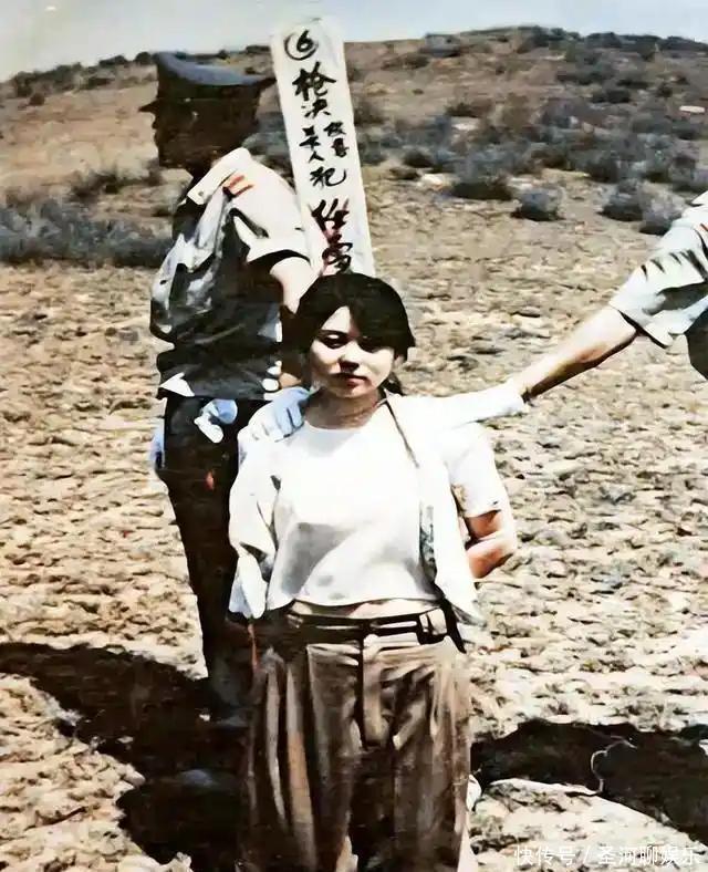 然则,若细加注释,不难发现她死后竖立着一块木质的板面。“枪毙杀东说念主犯”字样显眼于木板。