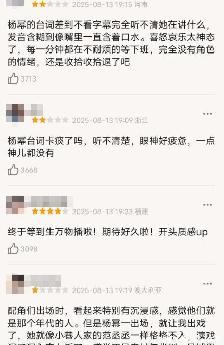 昨年同时,杨幂主演作品连扑,口碑跌至谷底。 而本年,一连三部新作上线,《生万物》成为口碑逆转的关节。弹幕和批驳区里,“五五开”的评价显得分外确凿。