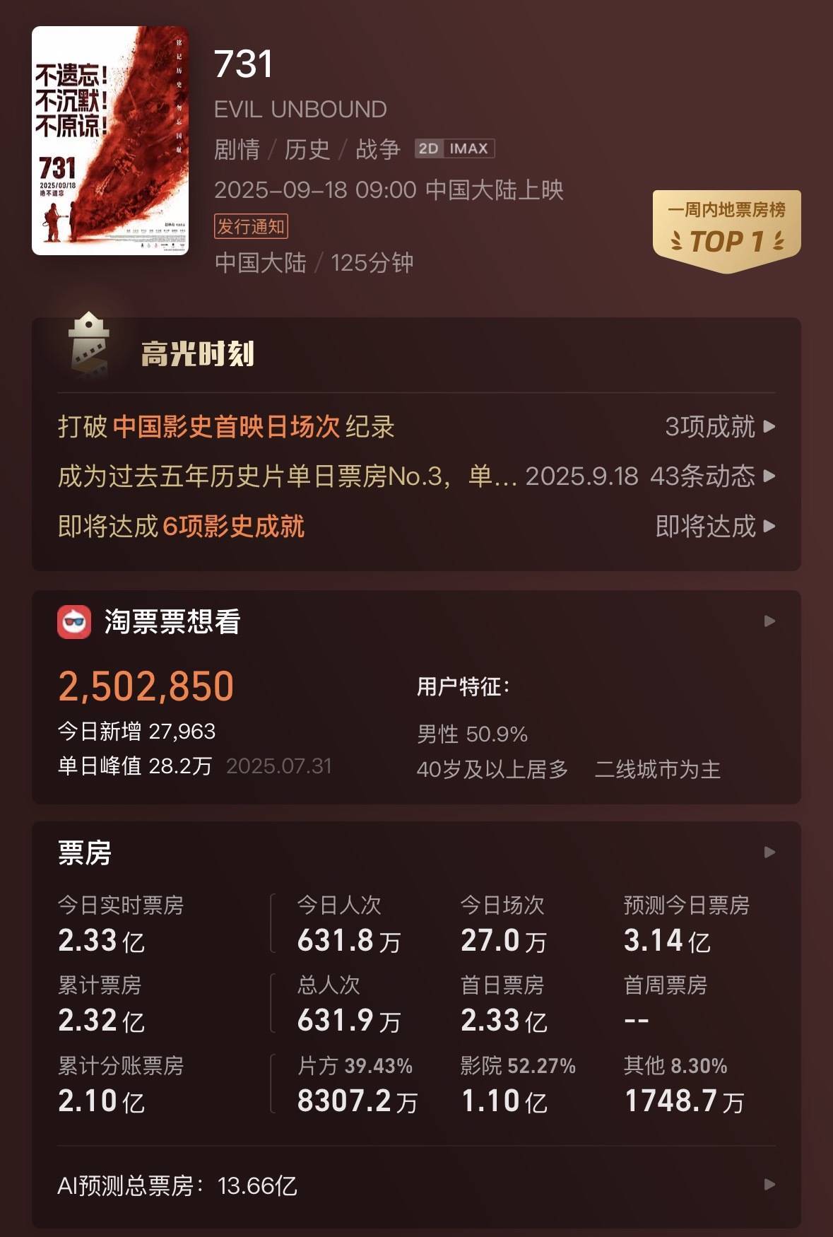 值得驻防的是,《731》的票房热度并非孤例,扫数影视板块在2025年齐处于回温的阶段。