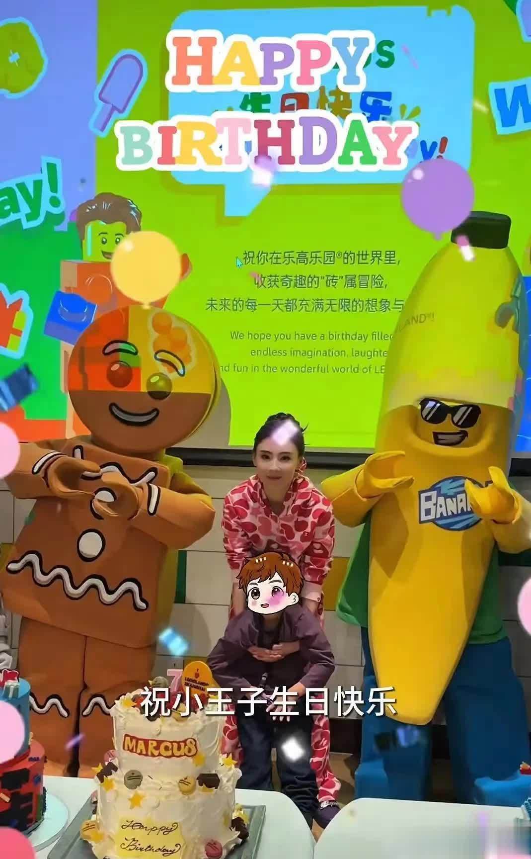 厚爱的庆生时间在室内举行。 张柏芝换上了一套红粉色的套装,显得格外亮眼。 小寿星Marcus则衣服紫色的小西装外衣搭配玄色长裤,造型奶帅奶帅的。 现场被打发得充满童趣,主题乐土的代表卡通东谈主物都来助兴,还有一个精致的双层蛋糕,上头装点了马卡龙,最显眼的位置放着数字“7”的荫庇,以及Marcus的英文名字。