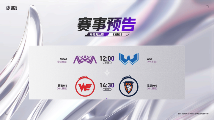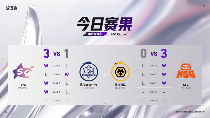 OP、桐乡情久、eStarPro、重庆狼队缺憾告别2025年王者荣耀挑战者杯淘汰赛舞台。
