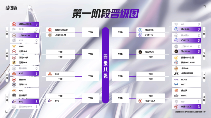 恭喜佛山DRG电子竞技俱乐部、广州TTG、SYG、KSG王者荣耀分部晋级2025年王者荣耀挑战者杯单败淘汰赛16-8阶段!