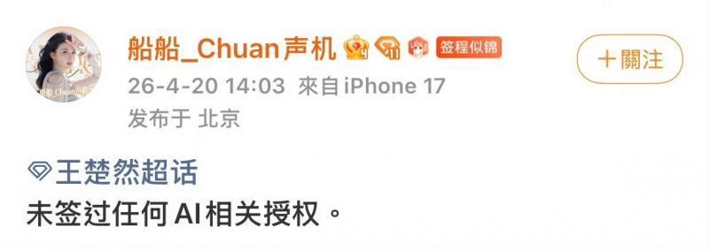 官宣大银幕名单包含张若昀、李一桐、王楚然、于和伟、陈哲远等多位闻名艺东谈主。音书发布后,艺东谈主方赶快集体辟谣。张若昀使命室当先声明:“没签过任何AI干系授权,法务正在蹙迫握住”。随后,于和伟使命室、李一桐团队、王楚然后盾会、陈哲远团队等均同步澄莹,未签署任何AI授权公约。