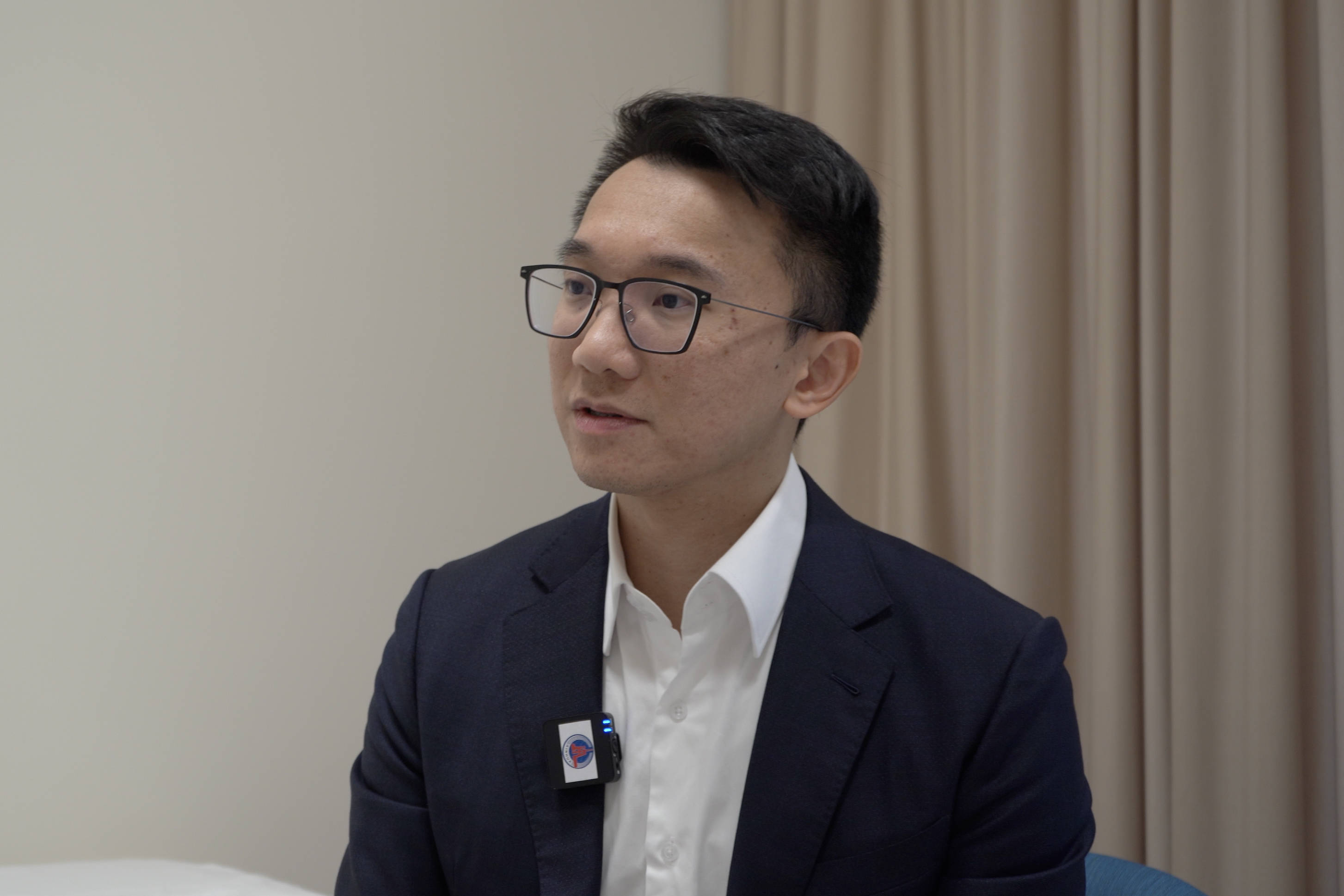 在深圳温存家病院,新风天域集团大湾区首席运营官萧毅晃袭取记者采访(2025年11月27日摄)。新华社发(龙镜伊摄)搭“一座桥”:轨制翻新 促上风互补